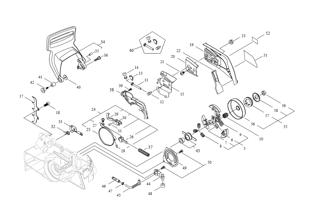 60 Napinacz łańcucha Shindaiwa 390SX / 446s / 452s - KOMPLETNY 58,00